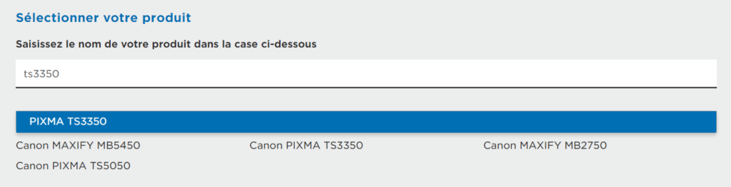 1. Rendez-vous sur le site internet de canon pour télécharger le logiciel d’installation de l’imprimante : https://www.canon.fr/support/